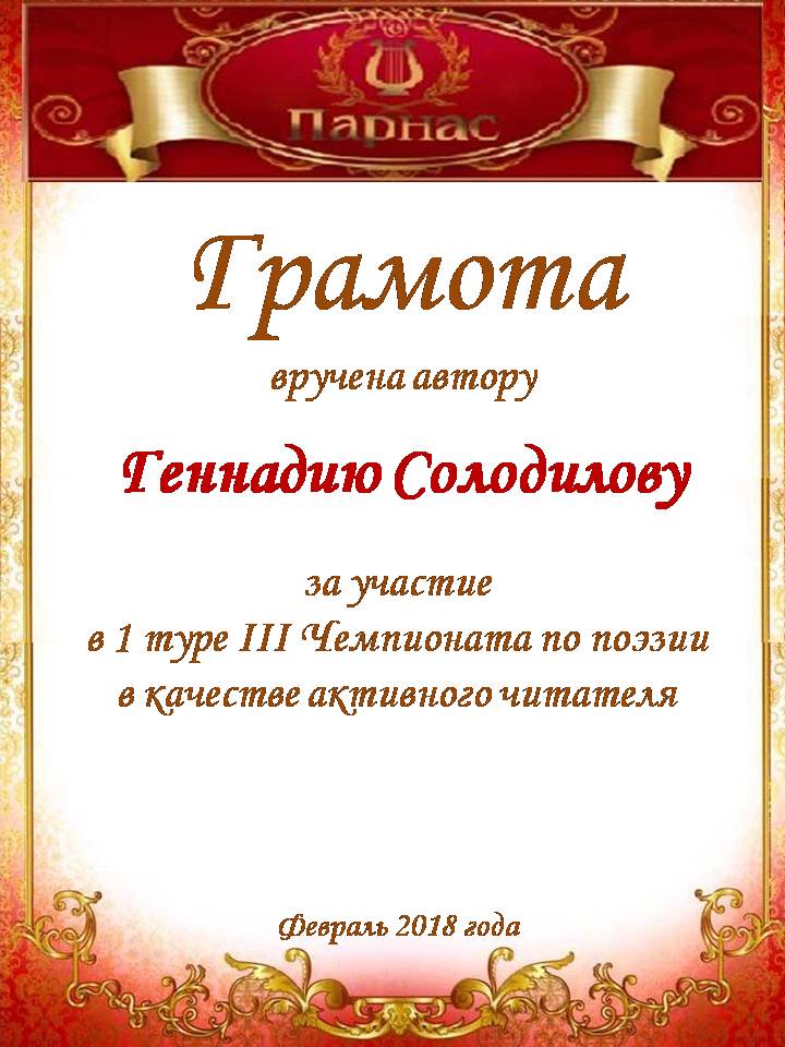 За активное участие в 3 туре III Чемпионата Поэзии