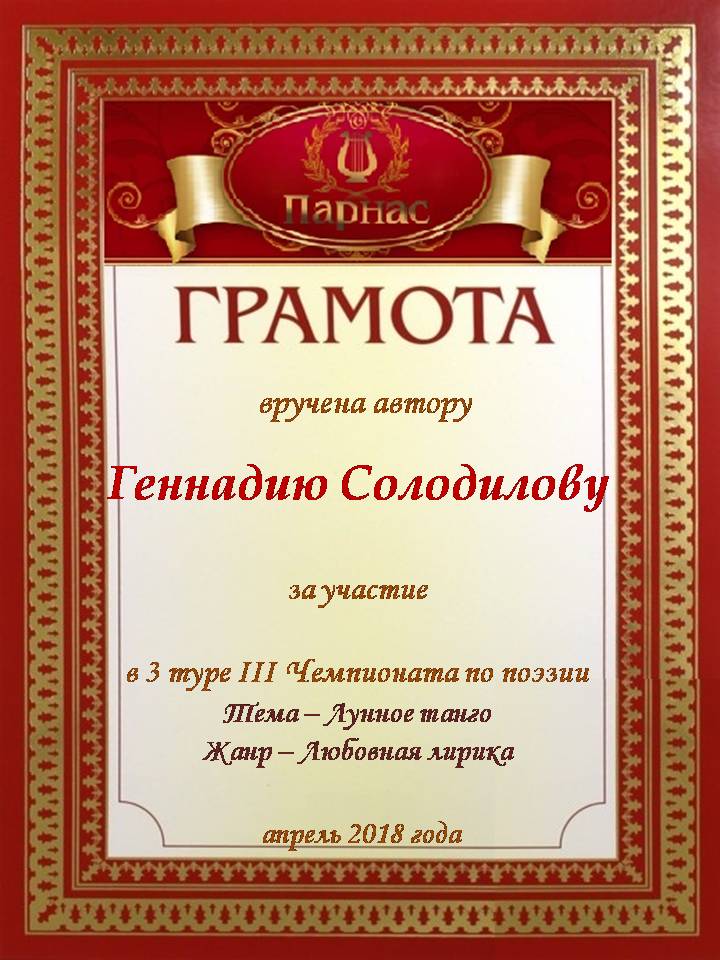 За 2 место в 4 туре Чемпионата по поэзии
