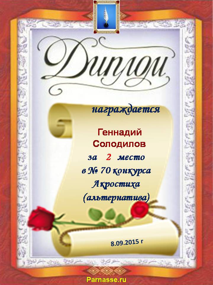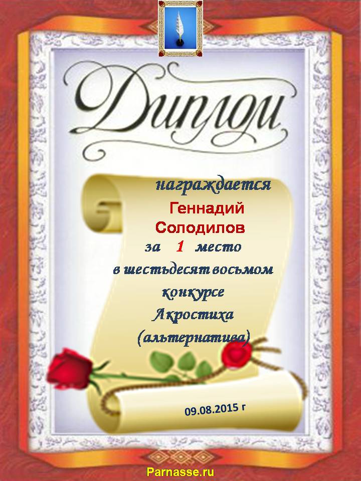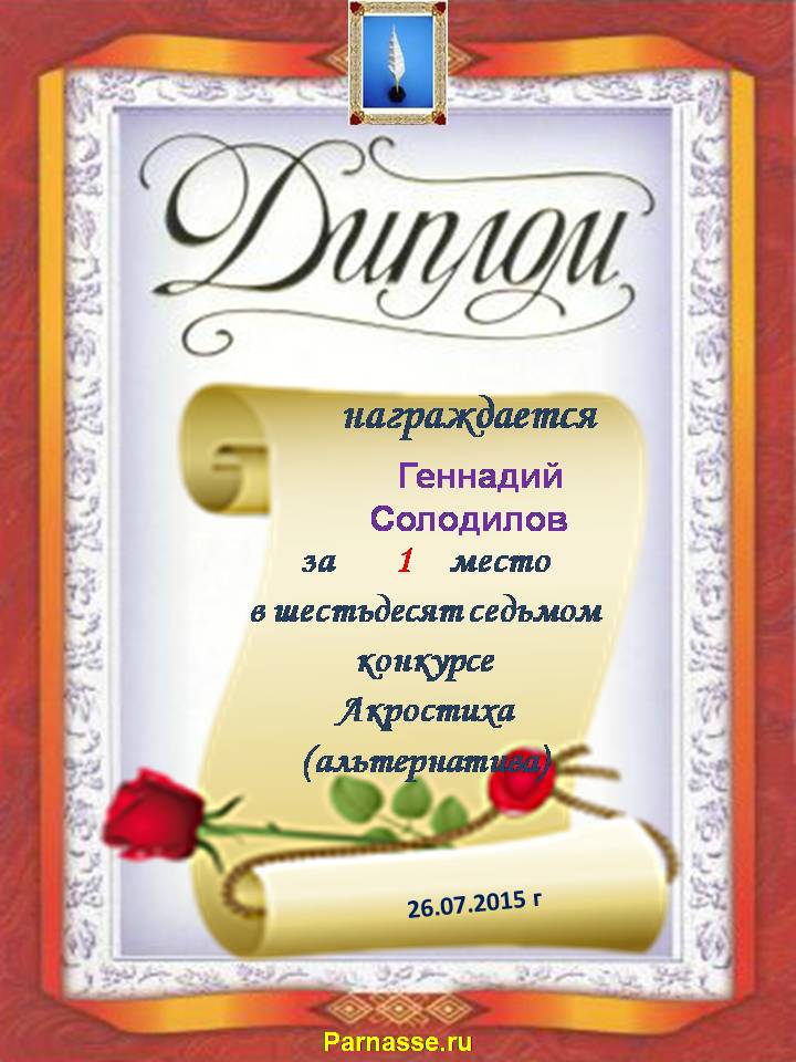 Диплом победителю в конкурсах Акростиха в связи с пятилетием конкурса Акростиха!