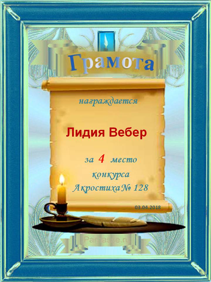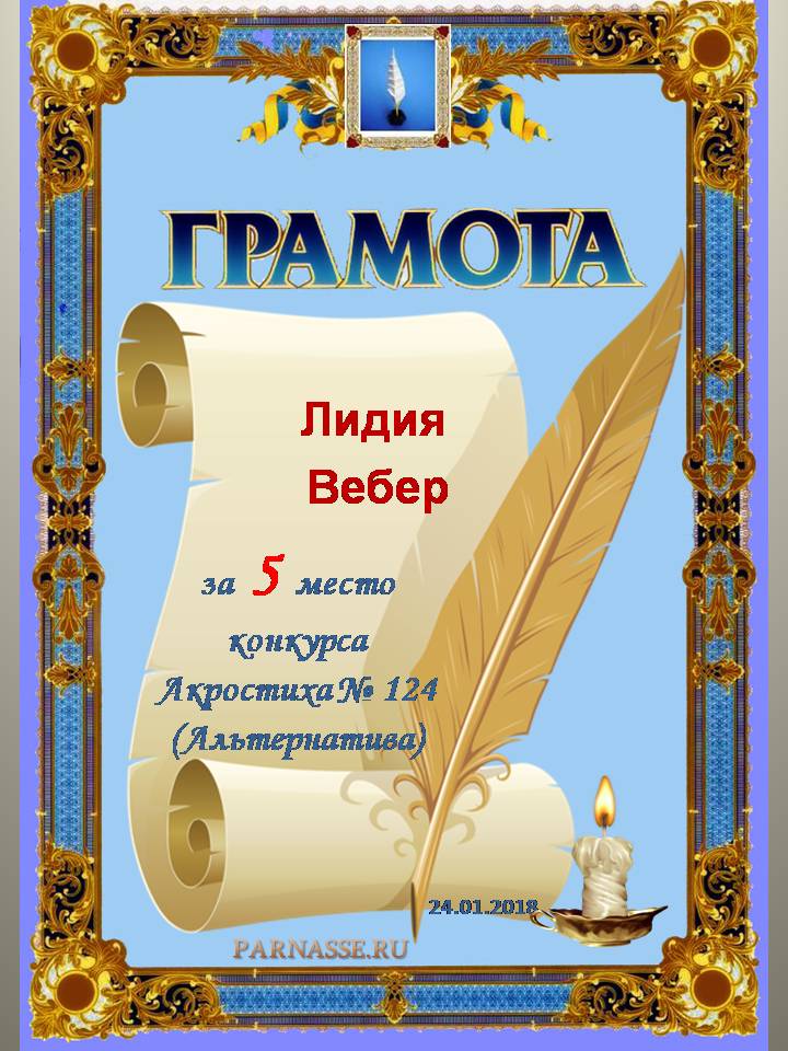 Грамота за 5 место в 124 конкурсе АКРОСТИХА (Альтернатива)! ПОЗДРАВЛЯЮ!