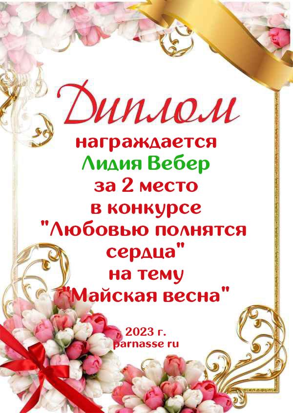 2 место в конкурсе Любовью полнятся сердца на тему Майская весна. Поздравляем!