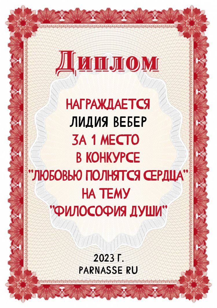 1 место в конкурсе Любовью полнятся сердца на тему "Философия души". Поздравляем!