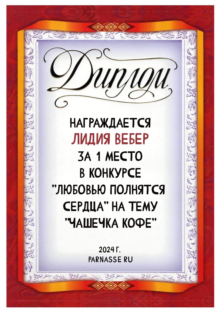 1 место в конкурсе "Любовью полнятся сердца" на тему "Чашечка кофе". Поздравляем!