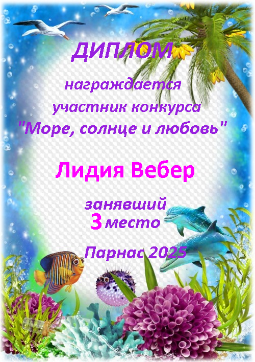 Третье место по итогам конкурса "Море, солнце и любовь"