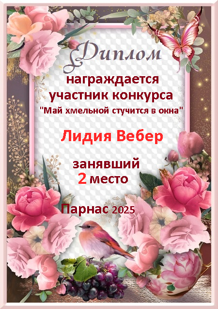 2 место место в судейском голосовании по итогам конкурса "Май хмельной стучится в окна"