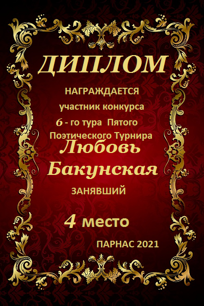 Четвёртое место в судейском голосовании по итогам 6-го тура Пятого ПоэтическогоТурнира