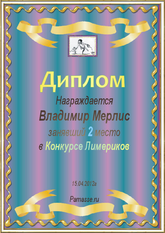 Диплом за 2 место в конкурсе лимериков№7. (15.04.2012.)