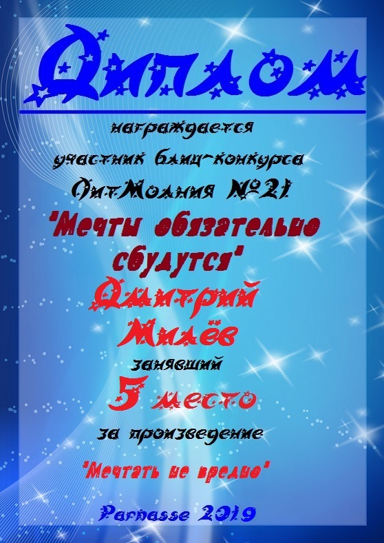 Поздравляю с занятым 4 местом в конкурсе "Литературная Комета - Полёт № 53" - Номинация Поэзия!