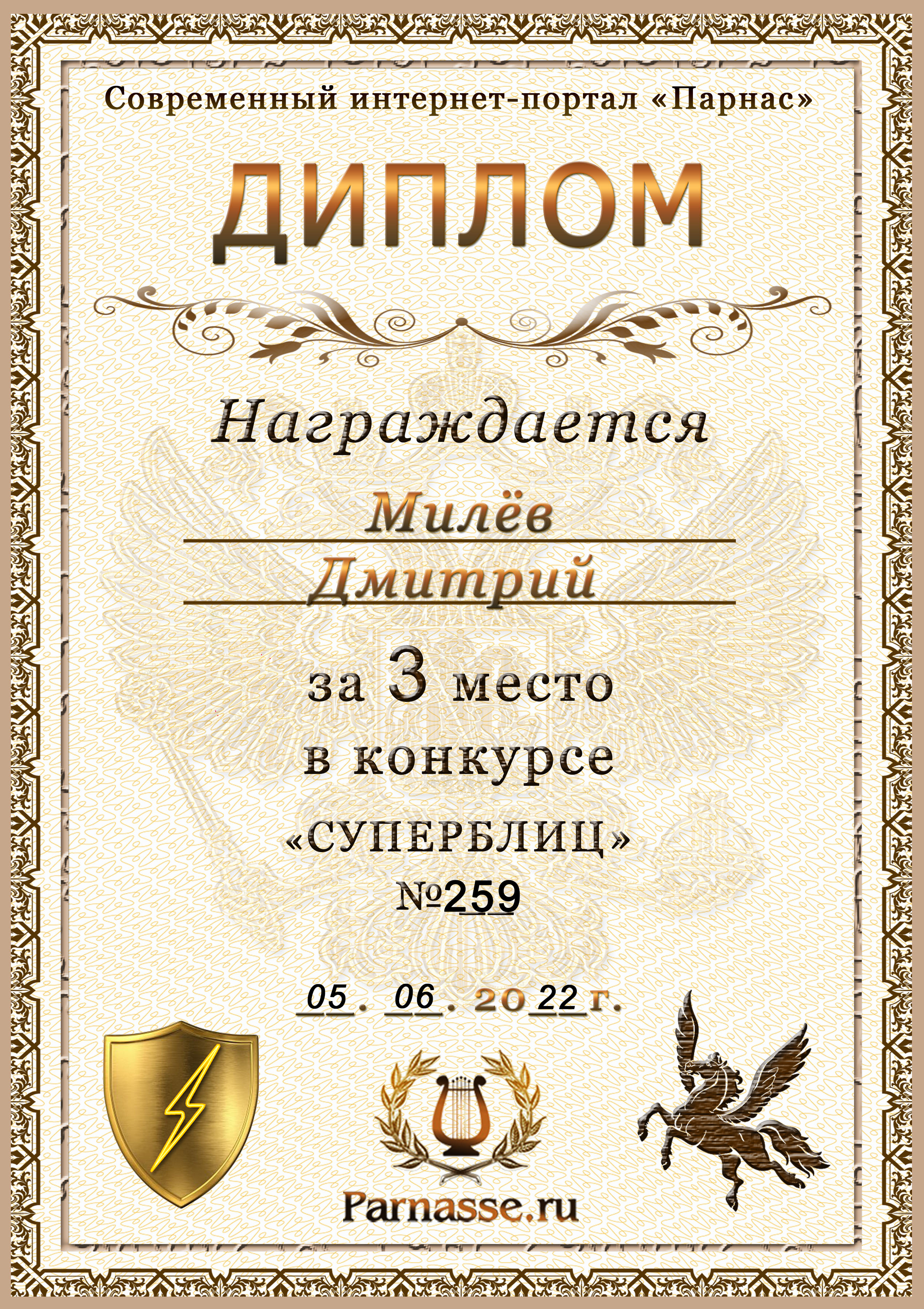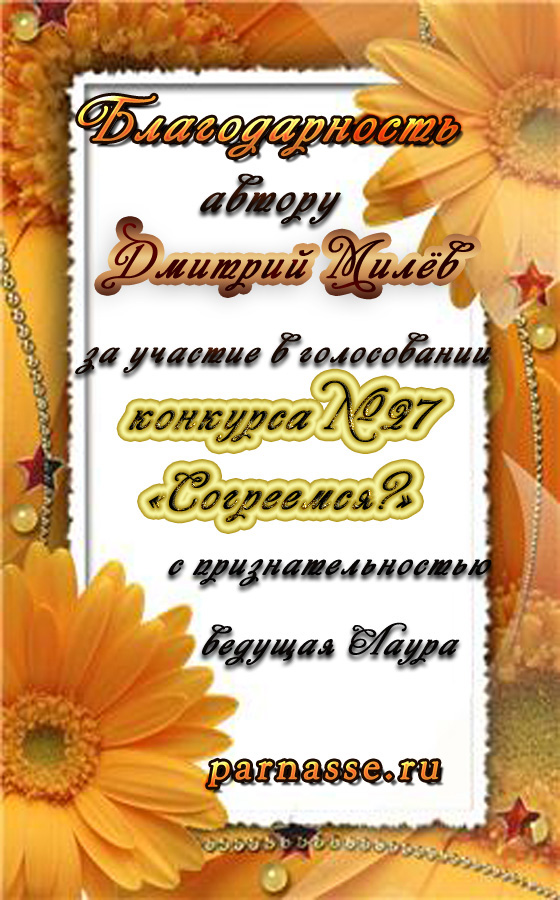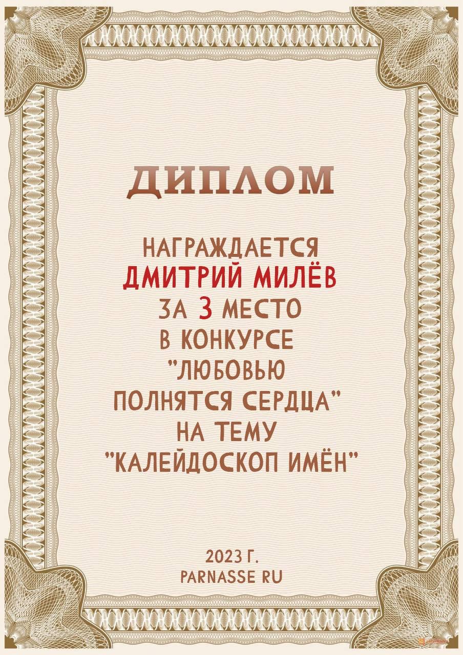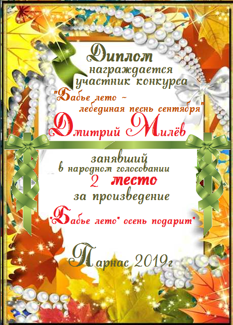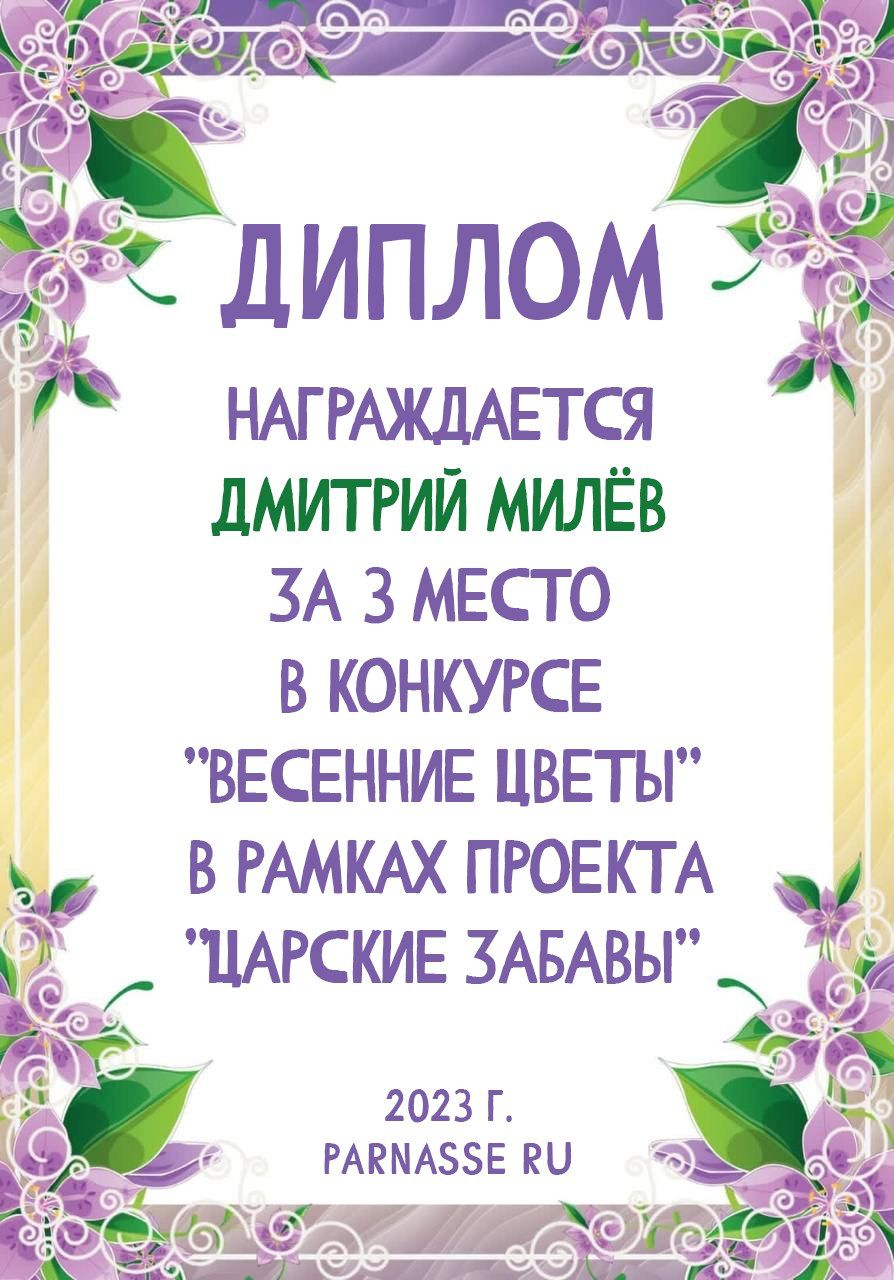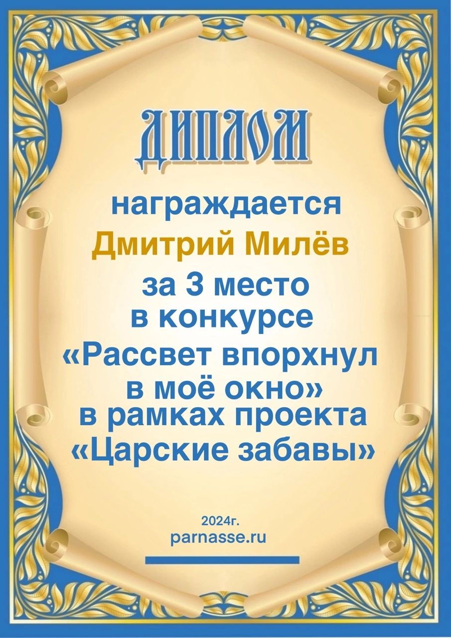 За 3 место в конкурсе "Рассвет впорхнул в моё окно". Поздравляем!