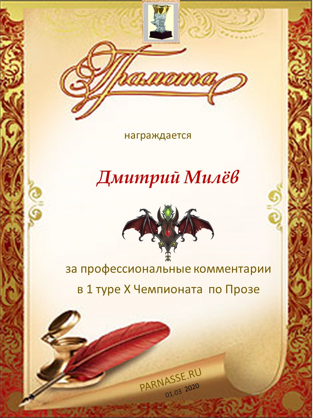 Большое спасибо за профессиональные и объективные комментарии в 1 туре X Чемпионата Парнаса по Прозе!