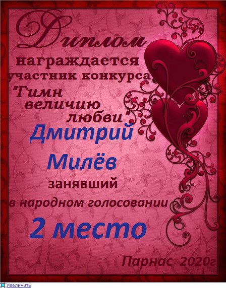 3 место в конкурсе "Поэзия чувств". Поздравляем!