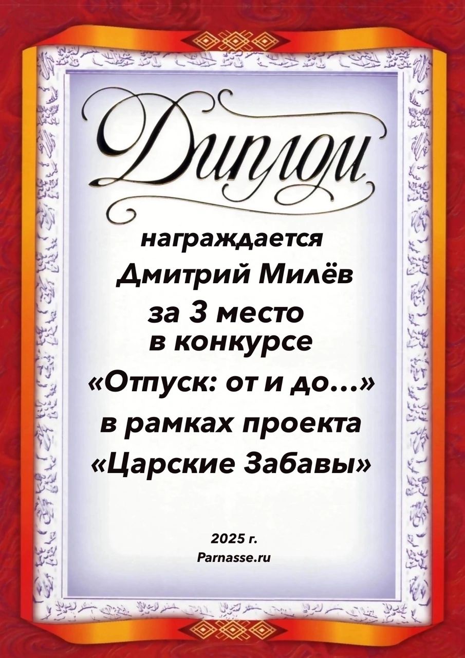 3 место в конкурсе "Отпуск: от и до".. Поздравляем!