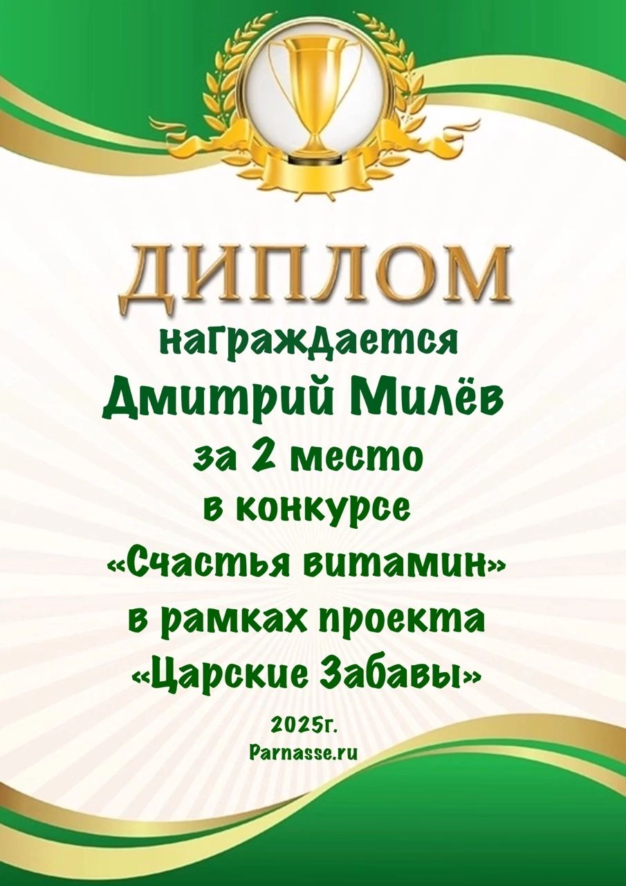 2 место в конкурсе "Счастья витамин". Поздравляем!