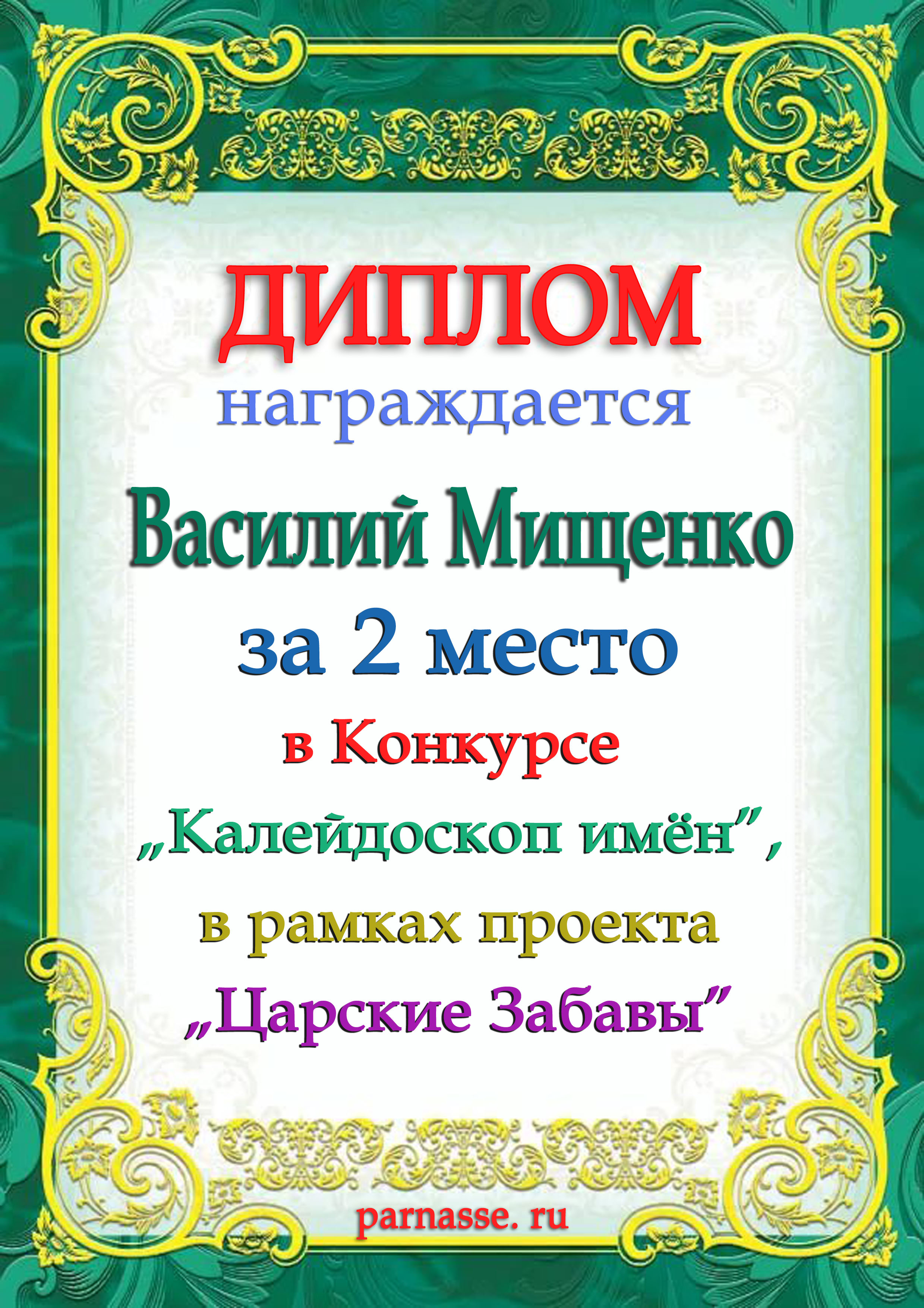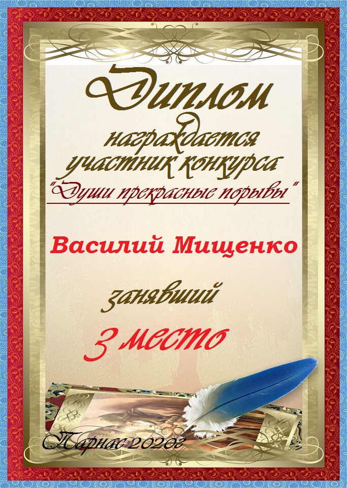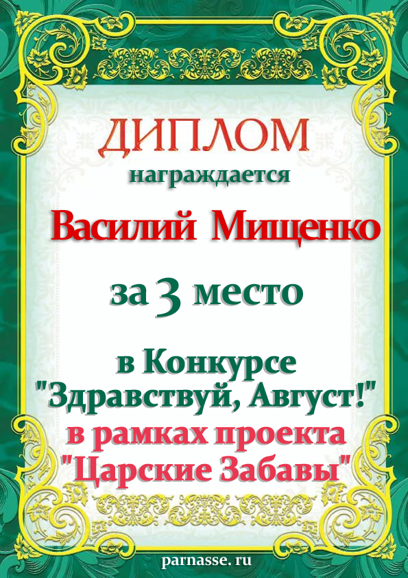 За 2 место в конкурсе "Поэтический сентябрь" в рамках проекта "Царские Забавы". Поздравляем!!