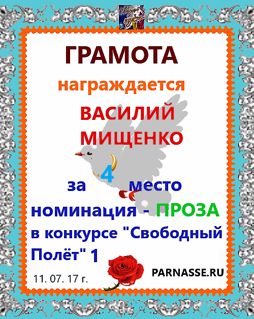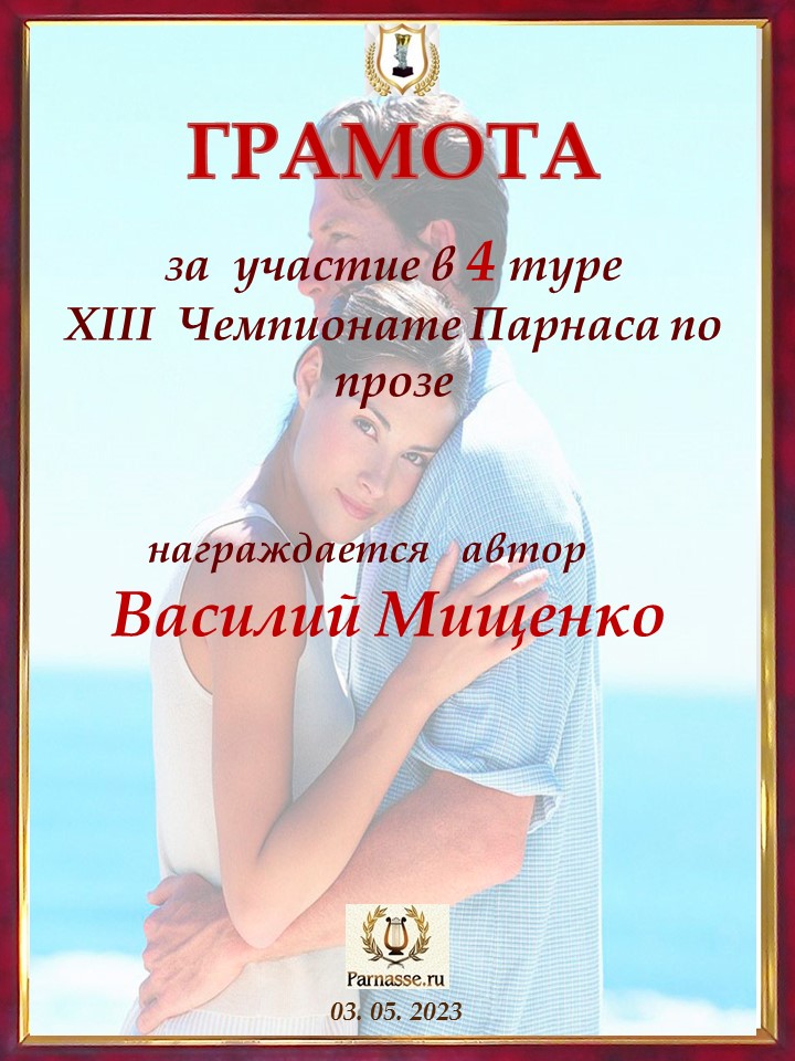 ![]() Медаль автора - участника в 4 туре XIII Чемпионата Парнаса по прозе