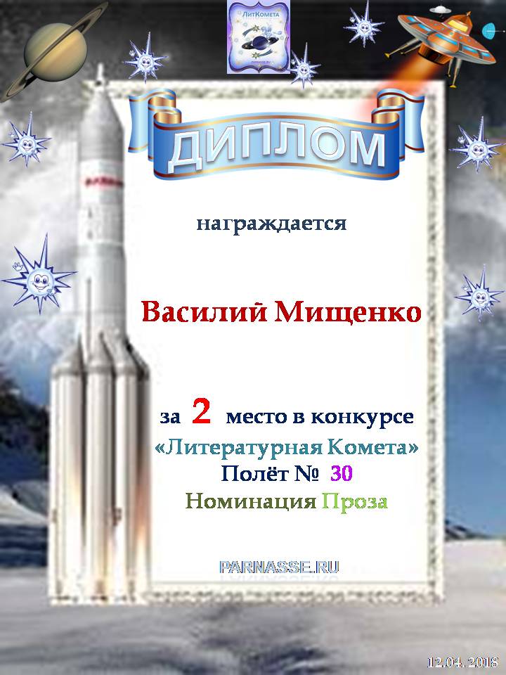 Поздравляю с занятым 2 местом в конкурсе "Литературная Комета - Полёт № 57" - Номинация Проза!