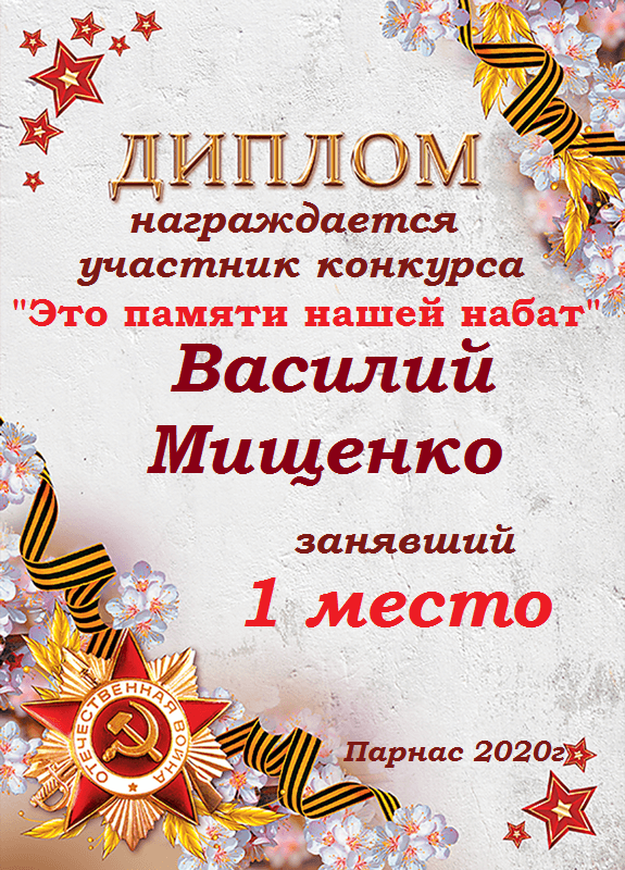 Первое место в судейском голосовании по итогам конкурса "Это памяти нашей набат