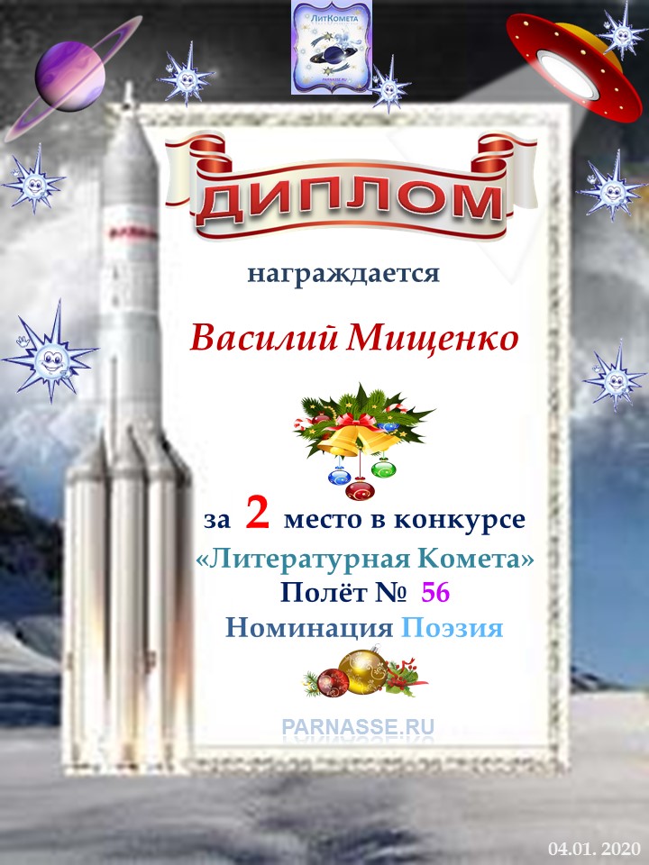 Поздравляю с занятым 4 местом в конкурсе "Литературная Комета - Полёт № 55" - Номинация Поэзия!