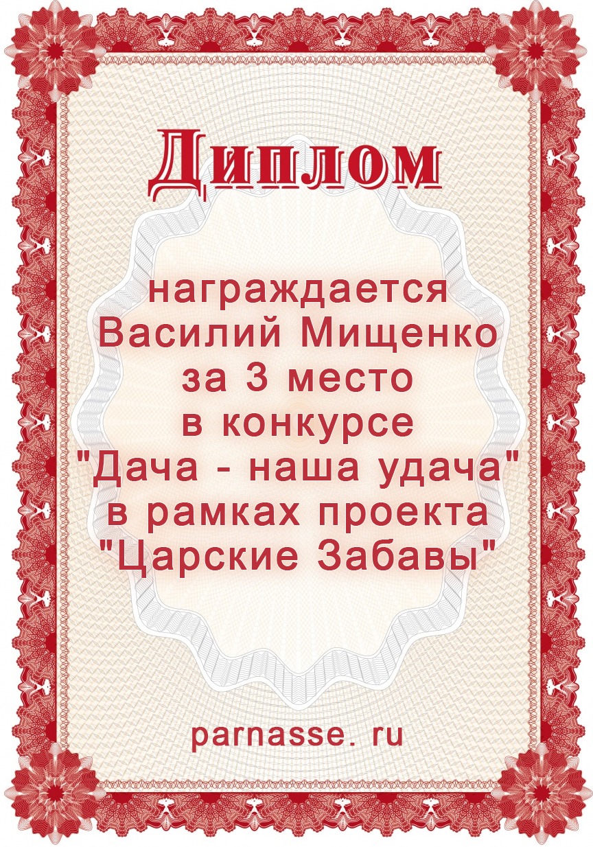 За 3 место в конкурсе "Дача - наша удача" в рамках проекта "Царские Забавы"
