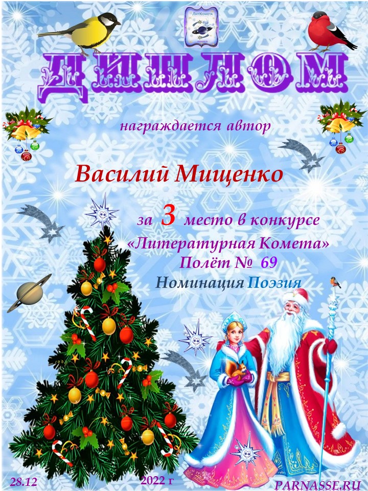 Поздравляю с занятым 3 местом в конкурсе "ЛитКомета-Полёт № 69" - Номинация Поэзия!