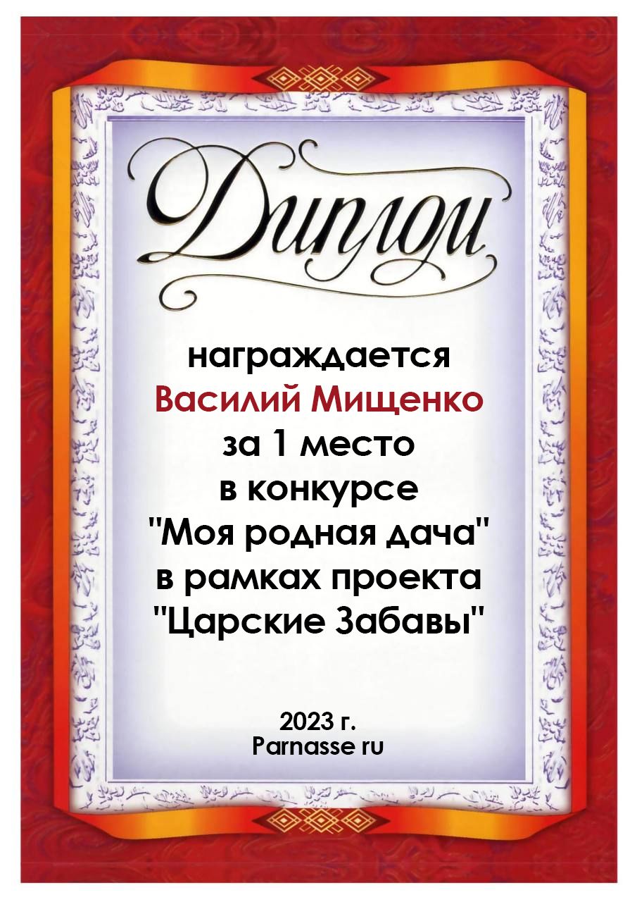 1 место в конкурсе "Моя родная дача" в рамках проекта "Царские Забавы". Поздравляем!