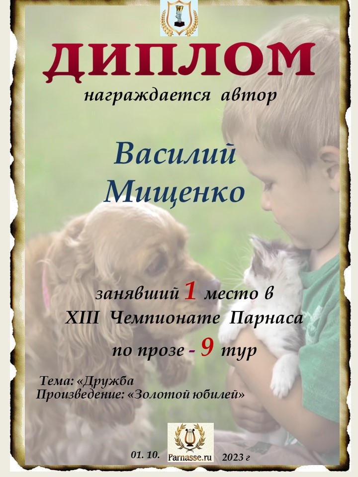 Поздравляю с занятым 1 местом в 9 туре XIII Чемпионата Парнаса по прозе!