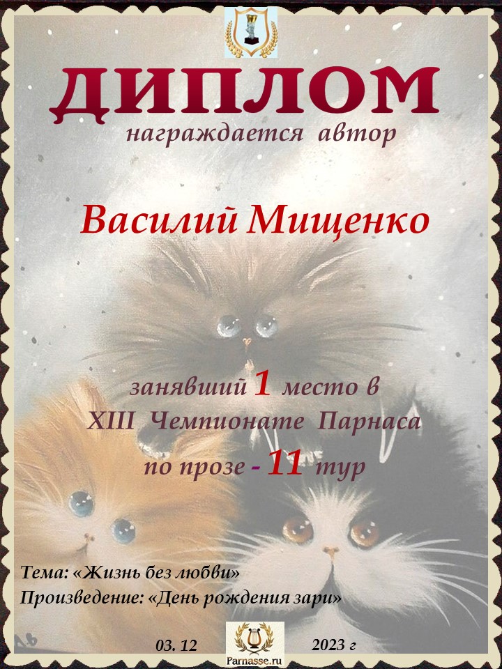 Поздравляю с занятым 1 местом в 11 туре XIII Чемпионата Парнаса по прозе!