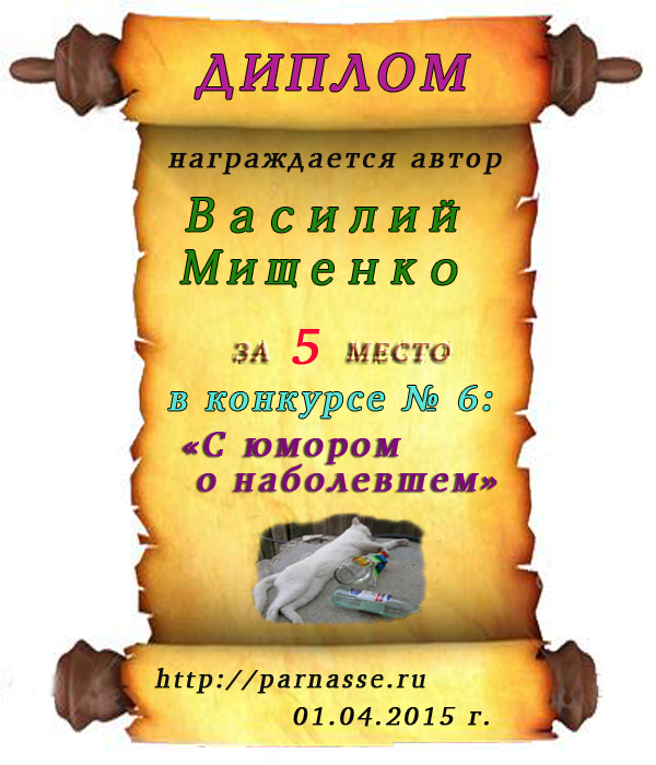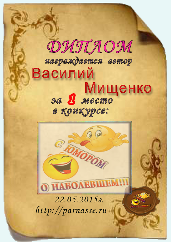 Диплом за 1 место в конкурсе " С юмором. о наболевшем"