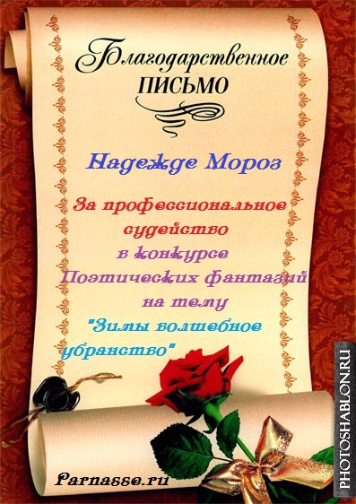 За профессиональное судейство в конкурсе Поэтических фантазий "Зимы волшебное убранство"