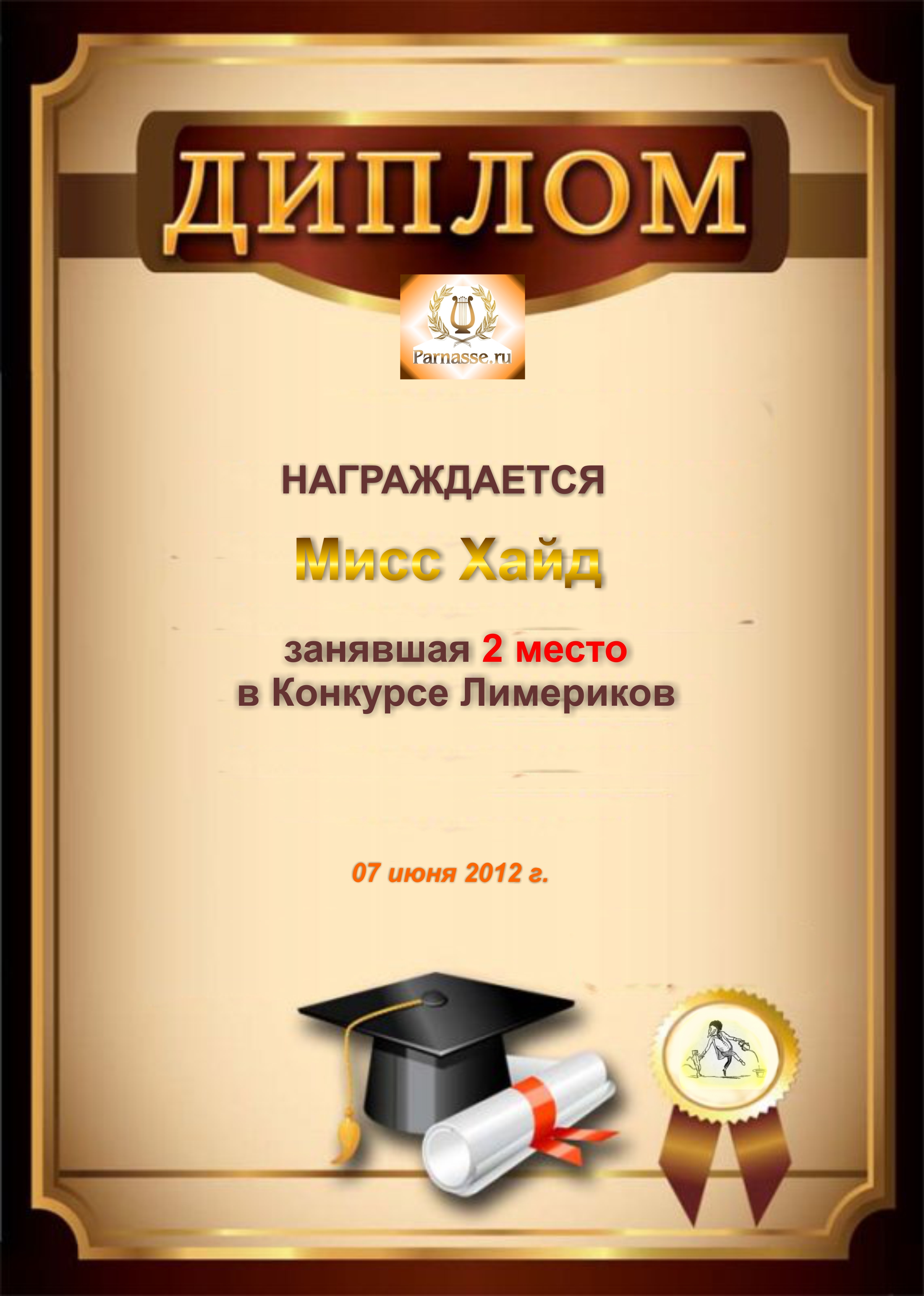 Диплом за 2 место в Конкурсе Лимериков № 13
