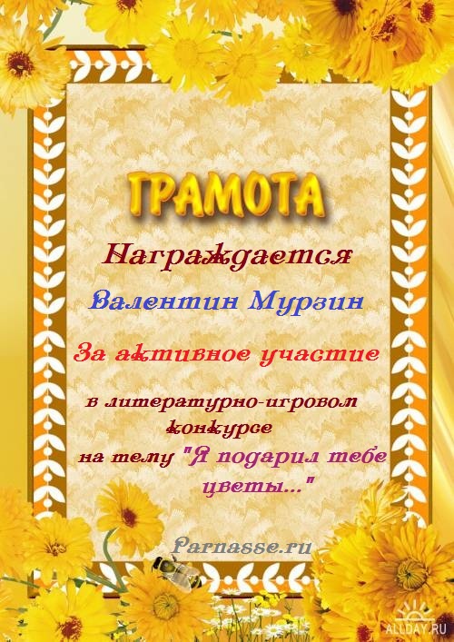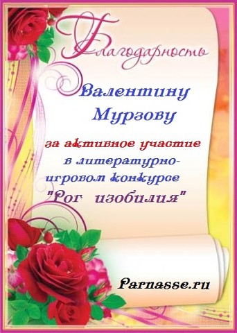Грамота за активное участие и отличный юмор в комментариях к конкурсу частушек №35