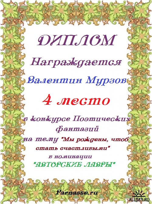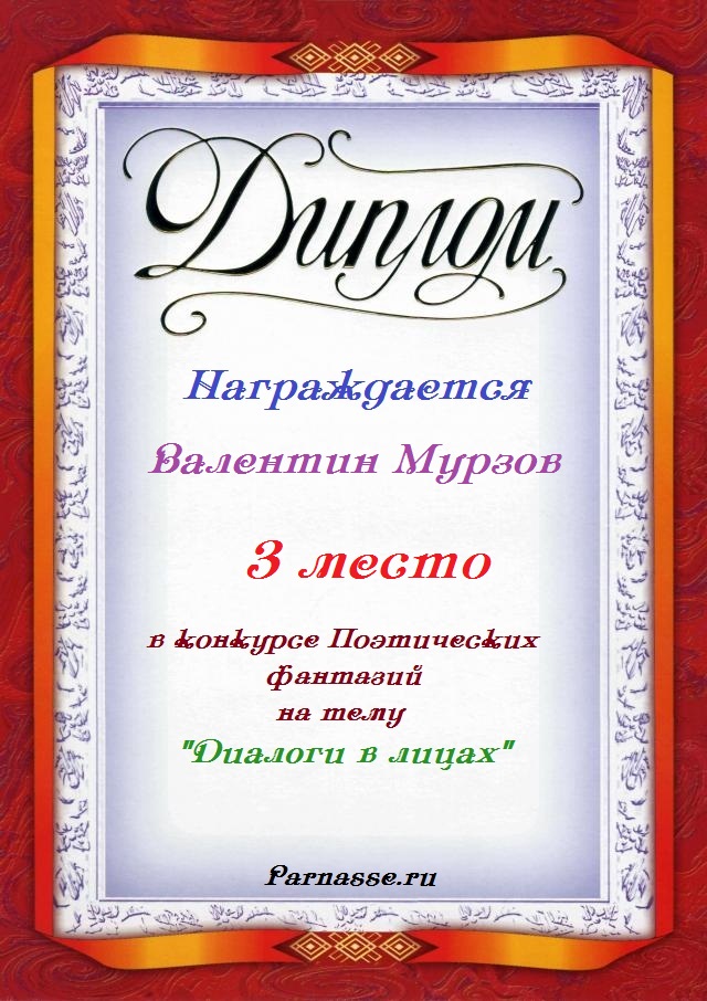 ![]() медаль за 3 место в конкурсе Поэтических фантази