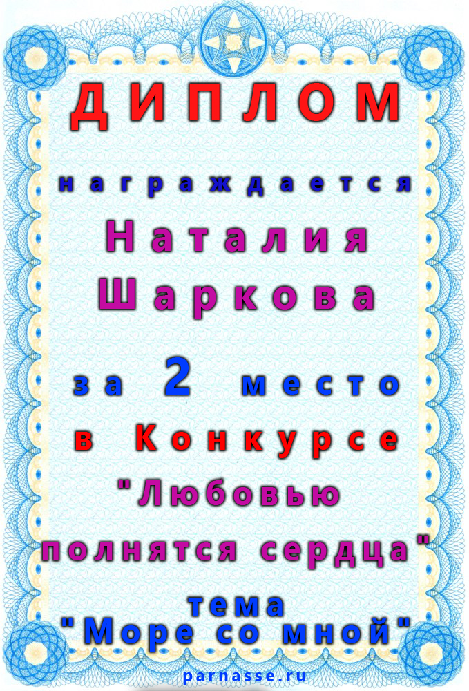 Третье место в конкурсе "Океан любви", судейское голосование. Поздравляем с прекрасной победой!