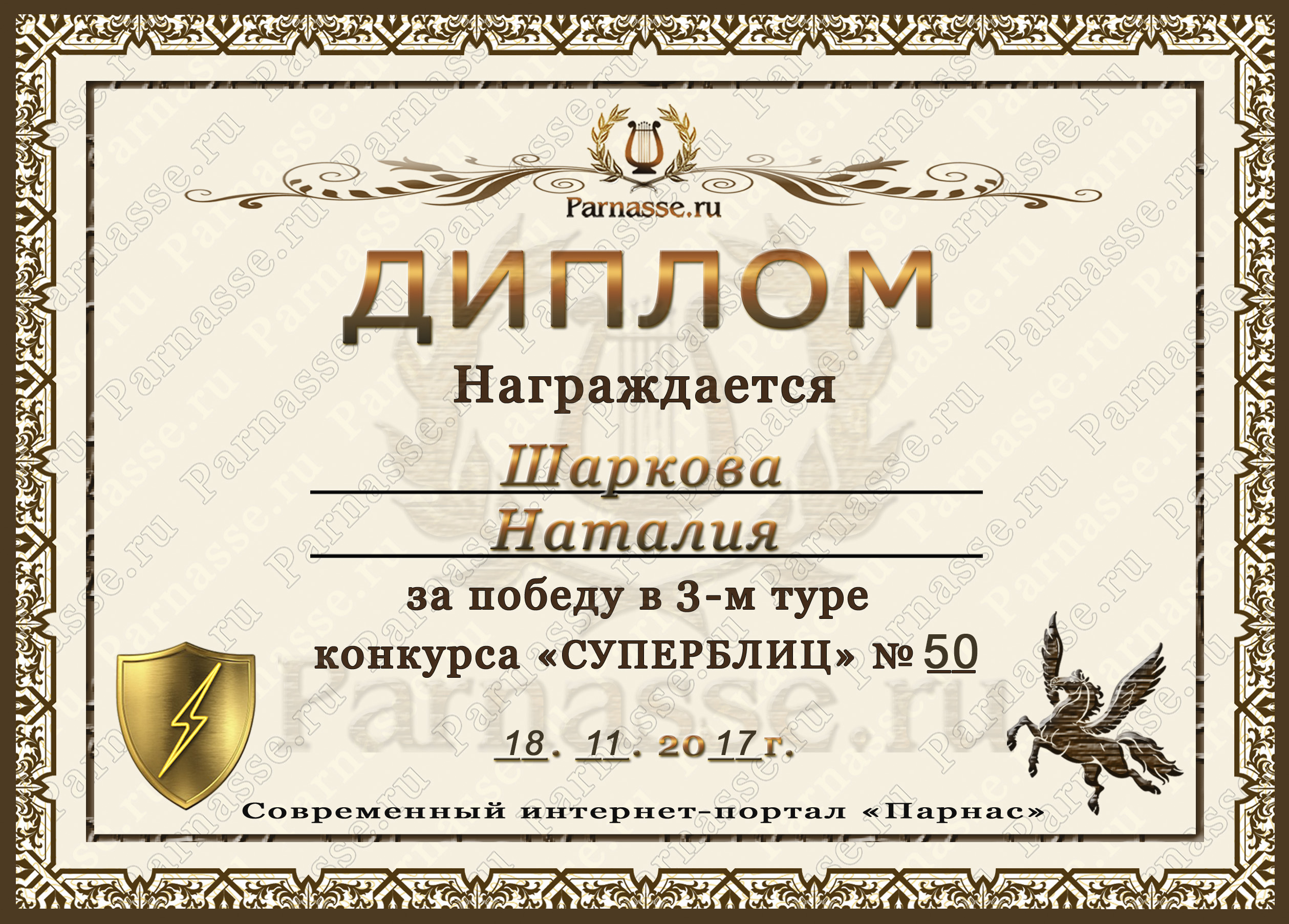 За участие в Третьем Поэтическом Турнире