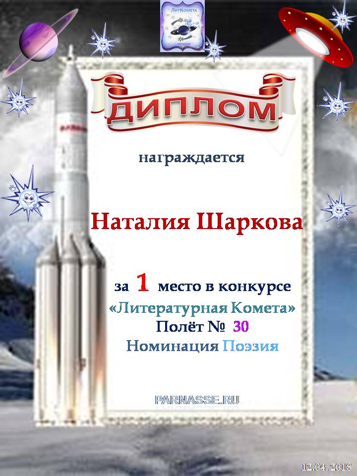 За 1 место в номинации "Поэзия" в конкурсе "Литературная Комета - Полёт № 30"