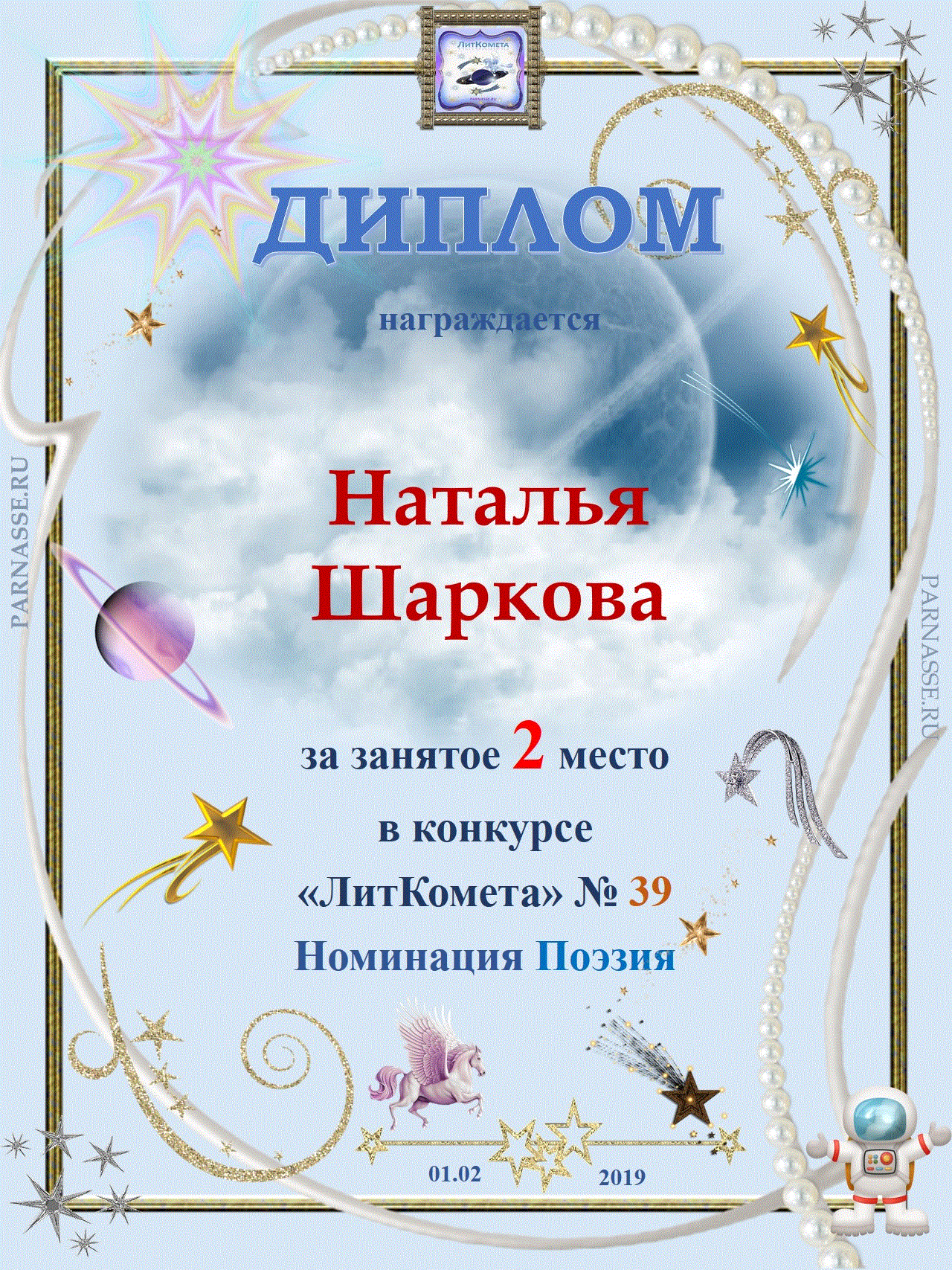 За 2 место - Номинация Поэзия, ЛитКомета, Полёт № 39
