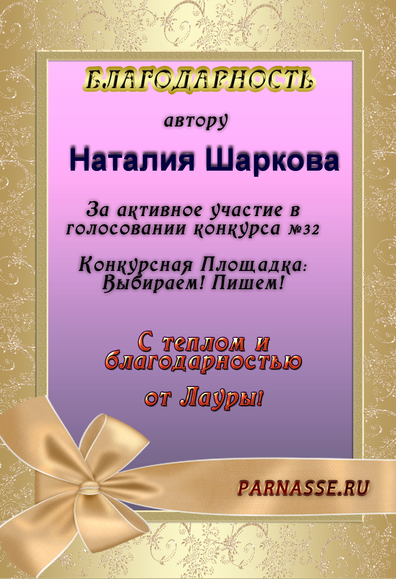 Благодарю за участие и поддержку конкурса! Желаю творческих успехов и удач!