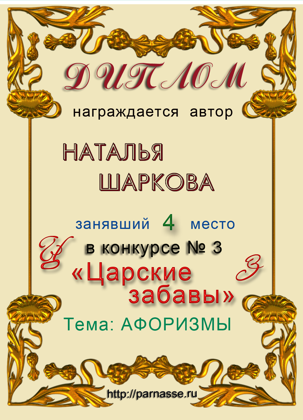 Диплом победителю в конкурсах Акростиха в связи с пятилетием конкурса Акростиха!