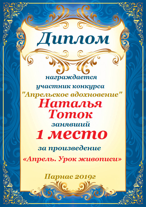 Первое место в конкурсе "Апрельское вдохновение", судейское голосование. Поздравляем с прекрасной победой!