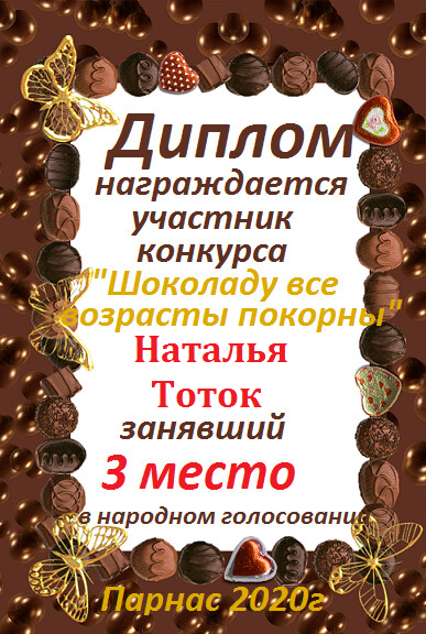 Третье место по итогам конкурса «Всё будет в шоколаде!", народное голосование. Поздравляем с прекрасной победой!