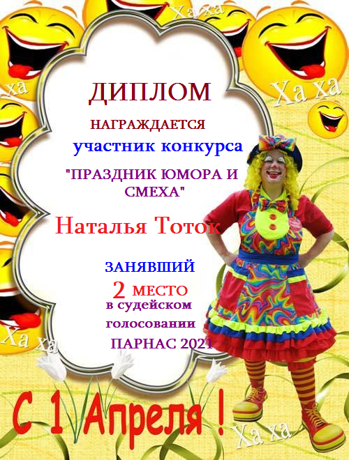 Второе место в судейском голосовании по итогам конкурса "Праздник юмора и смеха"