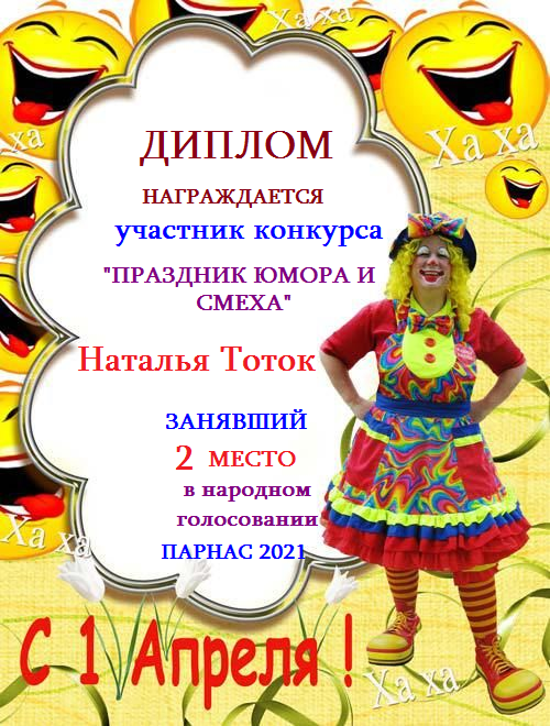 Второе место в народном голосовании по итогам конкурса " Праздник юмора и смеха"