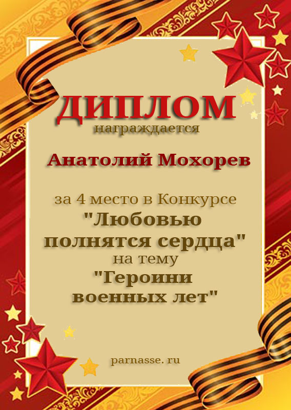 За 4 место в Конкурсе "Любовью полнятся сердца" на тему "Героини военных лет"