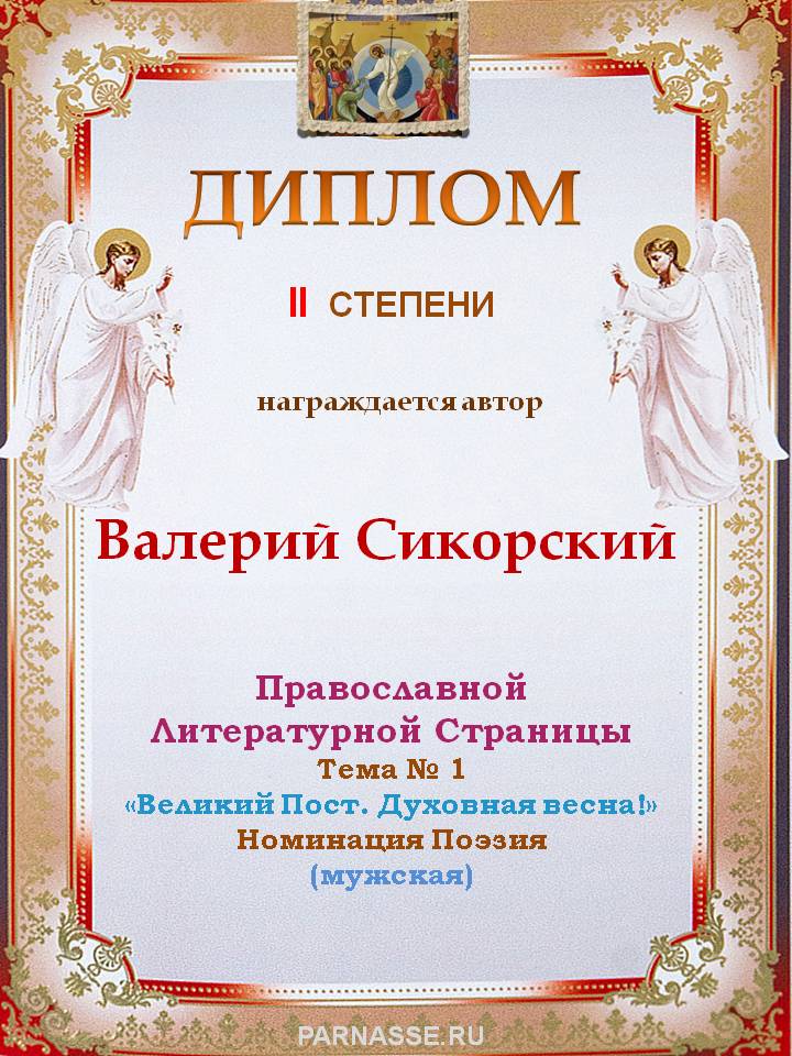 За красивую победу на Православной Литературной Странице, Тема № 1 "Великий Пост. Духовная весна!" Номинация Поэзия.