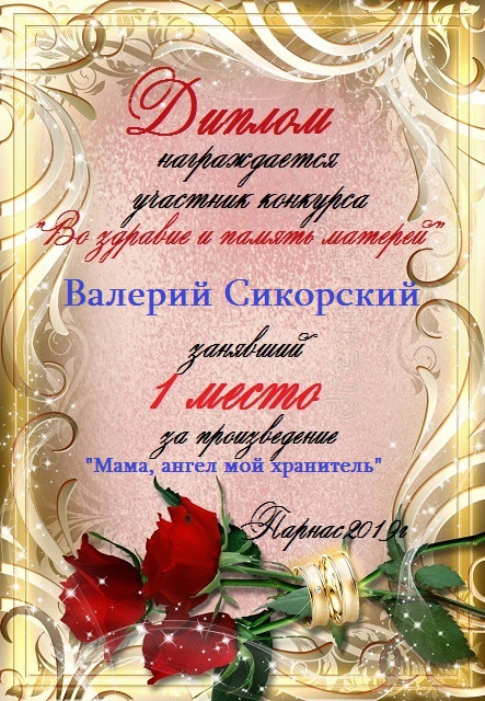 3-е место за стихотворение "Ах, Россия, Россия (песенный текст)". Тема № 1 "Мою страну зовут Россией!" ЛитСтраница "Струны небесные, струны земные".""