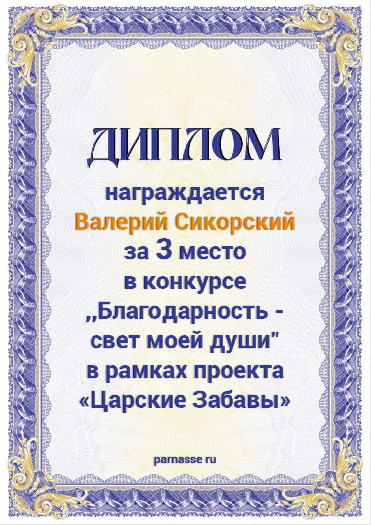 За 3 место в конкурсе "Благодарность - свет моей души" в рамках проекта "Царские Забавы"