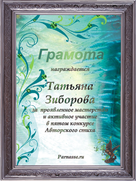 Диплом за 5 место в конкурсе Поэтических фантазий в номинации
