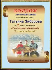 Диплом за 5 место в конкурсе Поэтических фантазий в номинации "Авторские лавры"