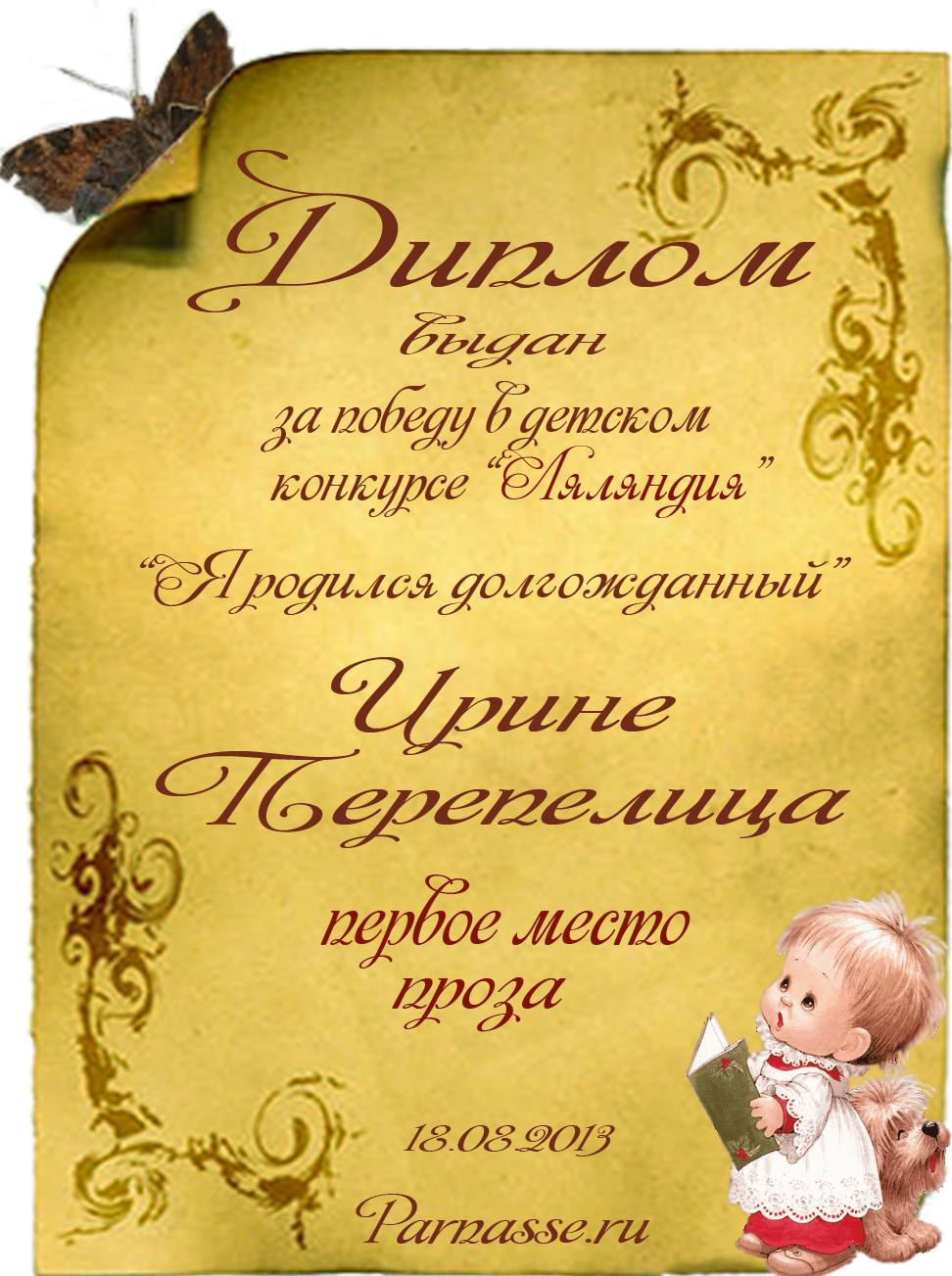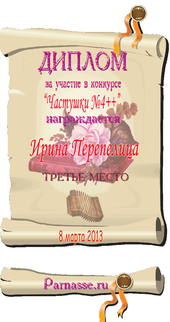 Диплом за 1 место в праздничном конкурсе "Поздравим Парнас с трёхлетием вместе!"