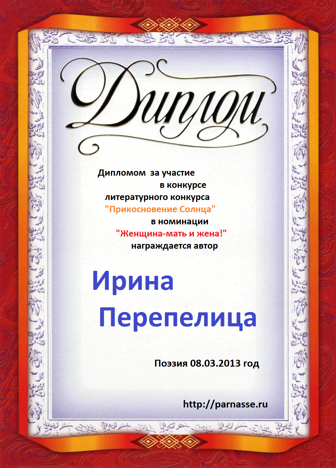 Диплом в конкурсе поэзии "Прикосновение Солнца"